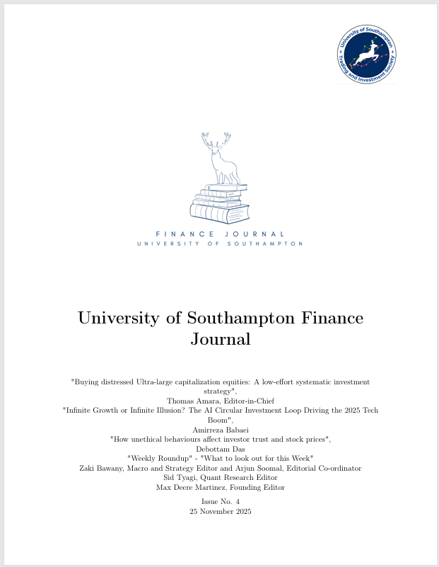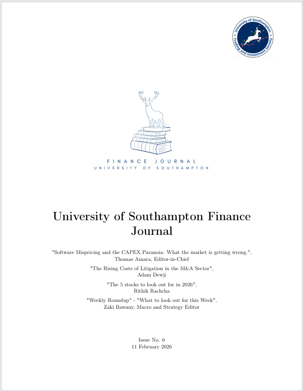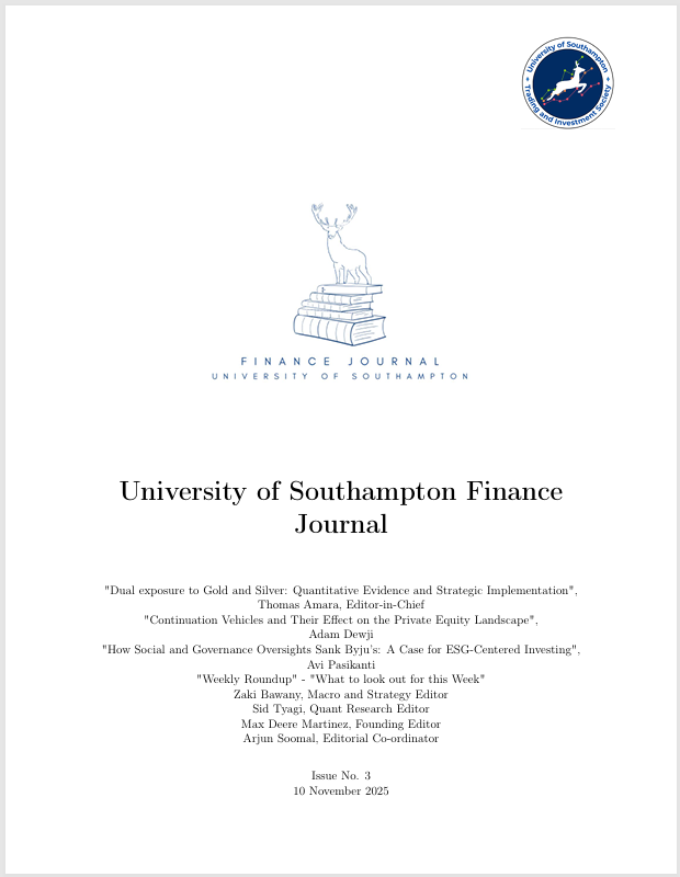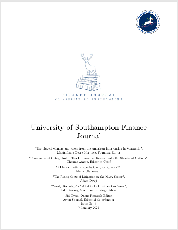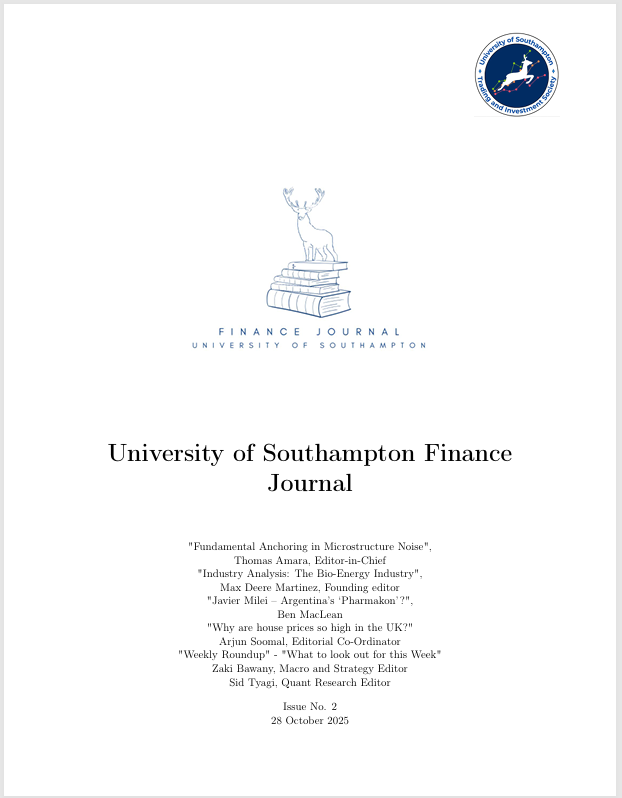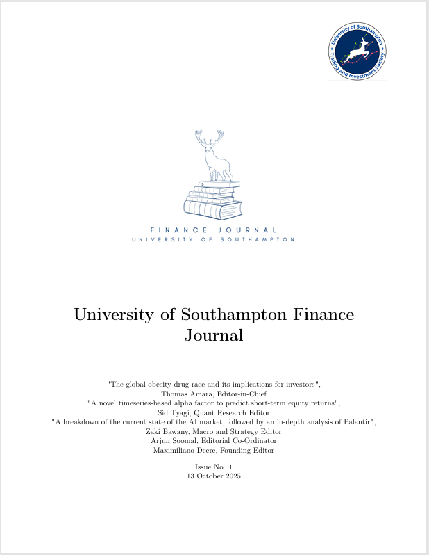 The Southampton Finance Journal publishes analytical research written by members of the University of Southampton Investment Fund and the Trading and Investment Society.